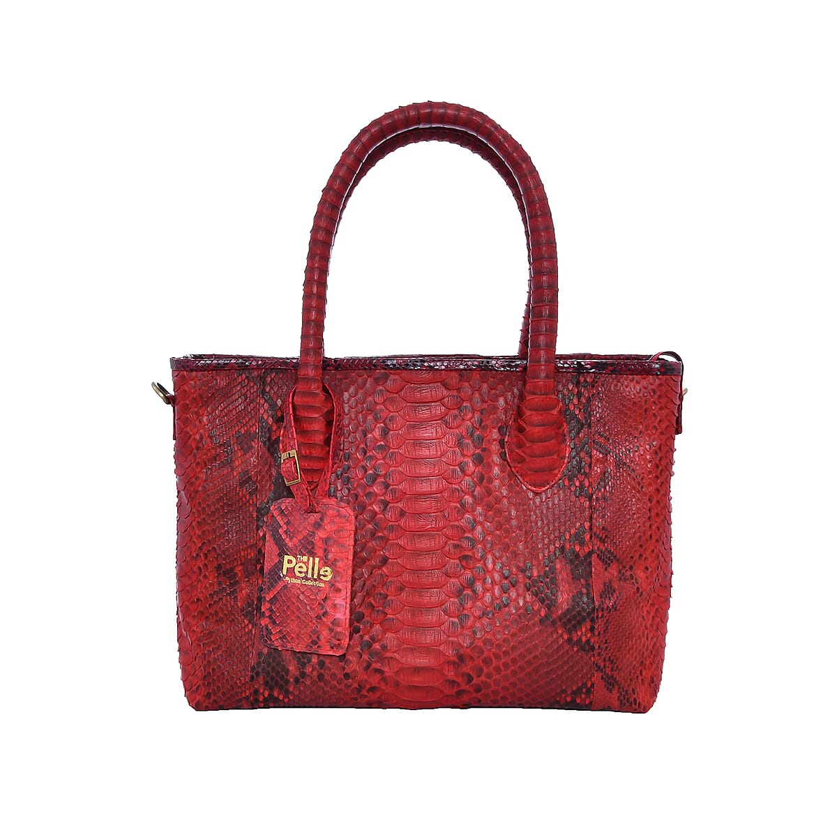 The Pelle Natural Python Collection Red Python Skin Leather Tote Bag with Detchable Strap (15x10.5x7)