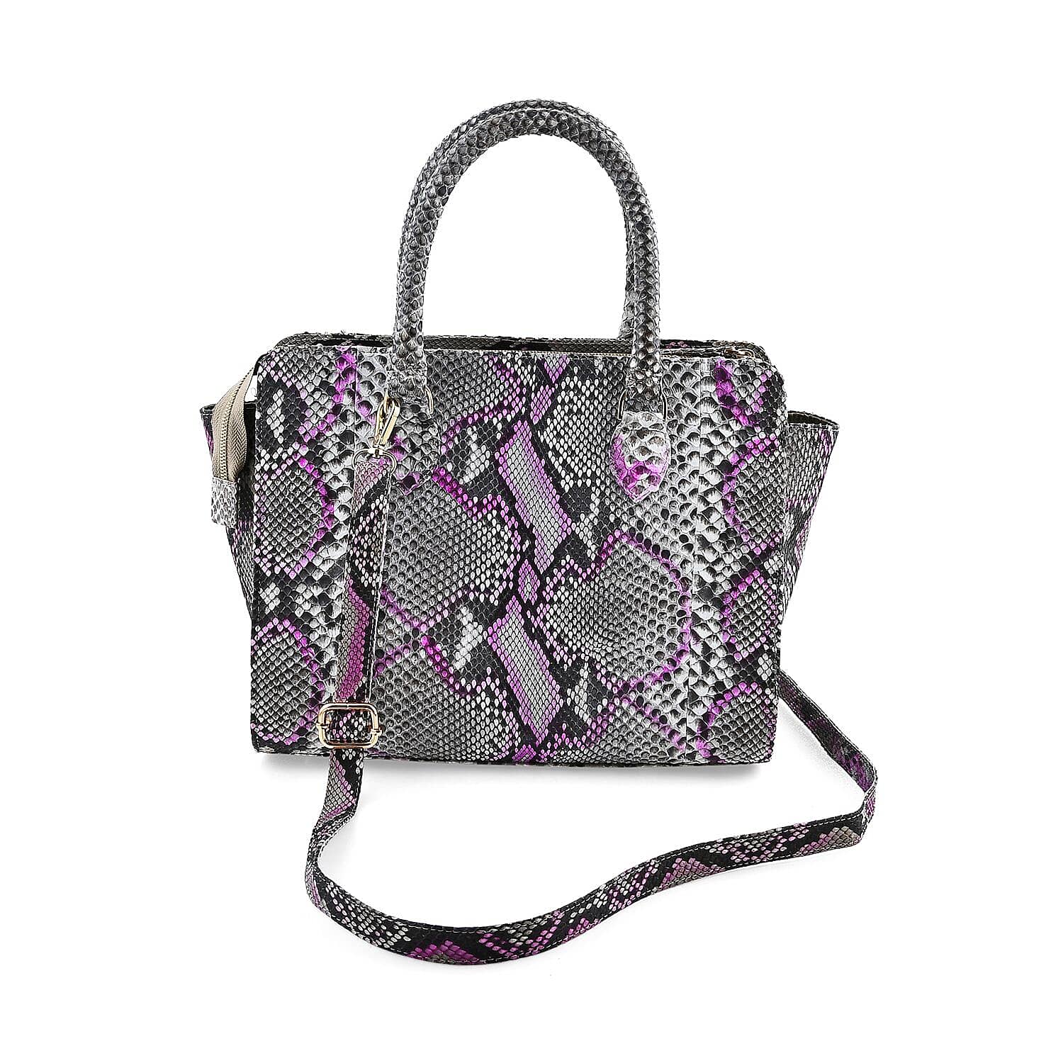 A: The Pelle Collection tote is meticulously crafted from 100% genuine python leather, showcasing the exquisite python skin pattern. Its authentic texture and sleek design offer a unique blend of luxury and elegance.