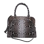 A: The Pelle Python tote bag is meticulously crafted from 100% genuine python leather. This exotic material provides a unique texture and a luxurious touch, making the bag a standout piece in any collection.