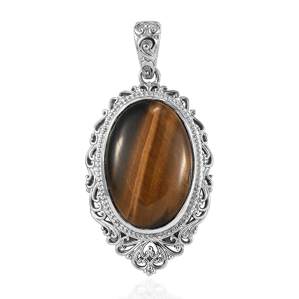 Tiger's Eye 29.90 ctw Solitaire Pendant without Chain in Platinum Over Copper with Magnet