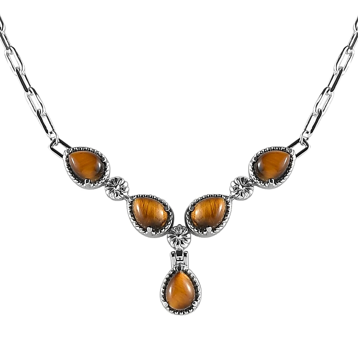 Tiger's Eye 7.80 ctw Necklace in Silvertone and Stainless Steel 18 Inches