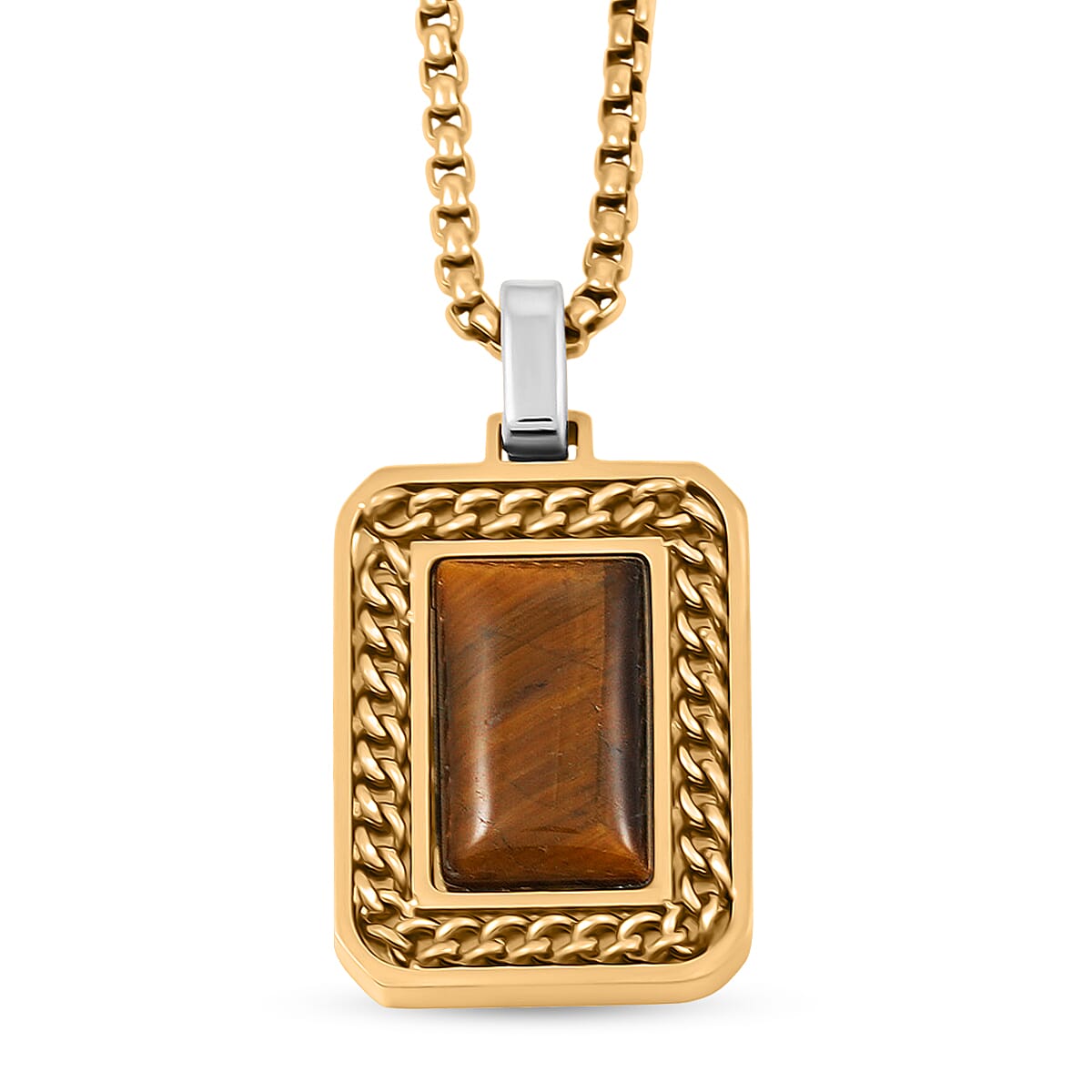 Tigers Eye Double Layer Necklace (22 Inches) in ION Plated YG Stainless Steel 1.50 ctw