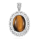 Tiger's Eye Solitaire Pendant without Chain in Platinum Over Copper with Magnet 15.75 ctw