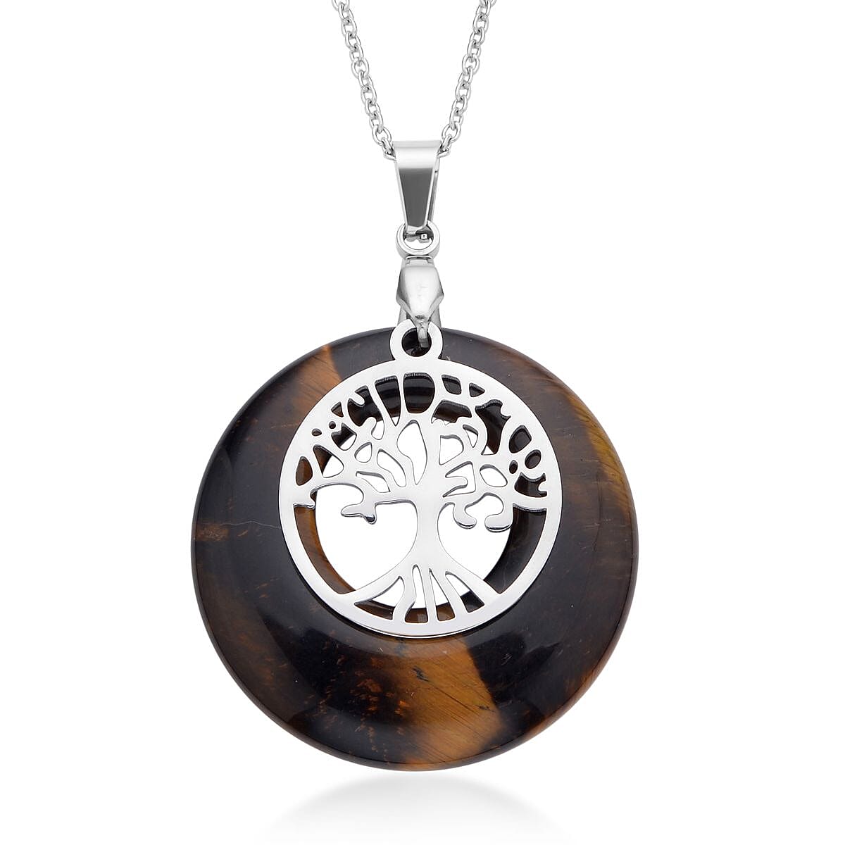 Tiger's Eye Tree of Life Pendant Necklace (20 Inches) in Stainless Steel 40.00 ctw , Tarnish-Free, Waterproof, Sweat Proof Jewelry