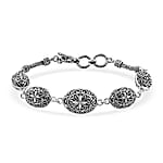This Bali Legacy floral toggle clasp bracelet, expertly handcrafted in sterling silver, epitomizes the essence of Balinese craftsmanship with its elegant, artistic flair. The intricate floral design and sleek toggle clasp combine tradition with contemporary style, making this silver bracelet a timeless piece to adorn.