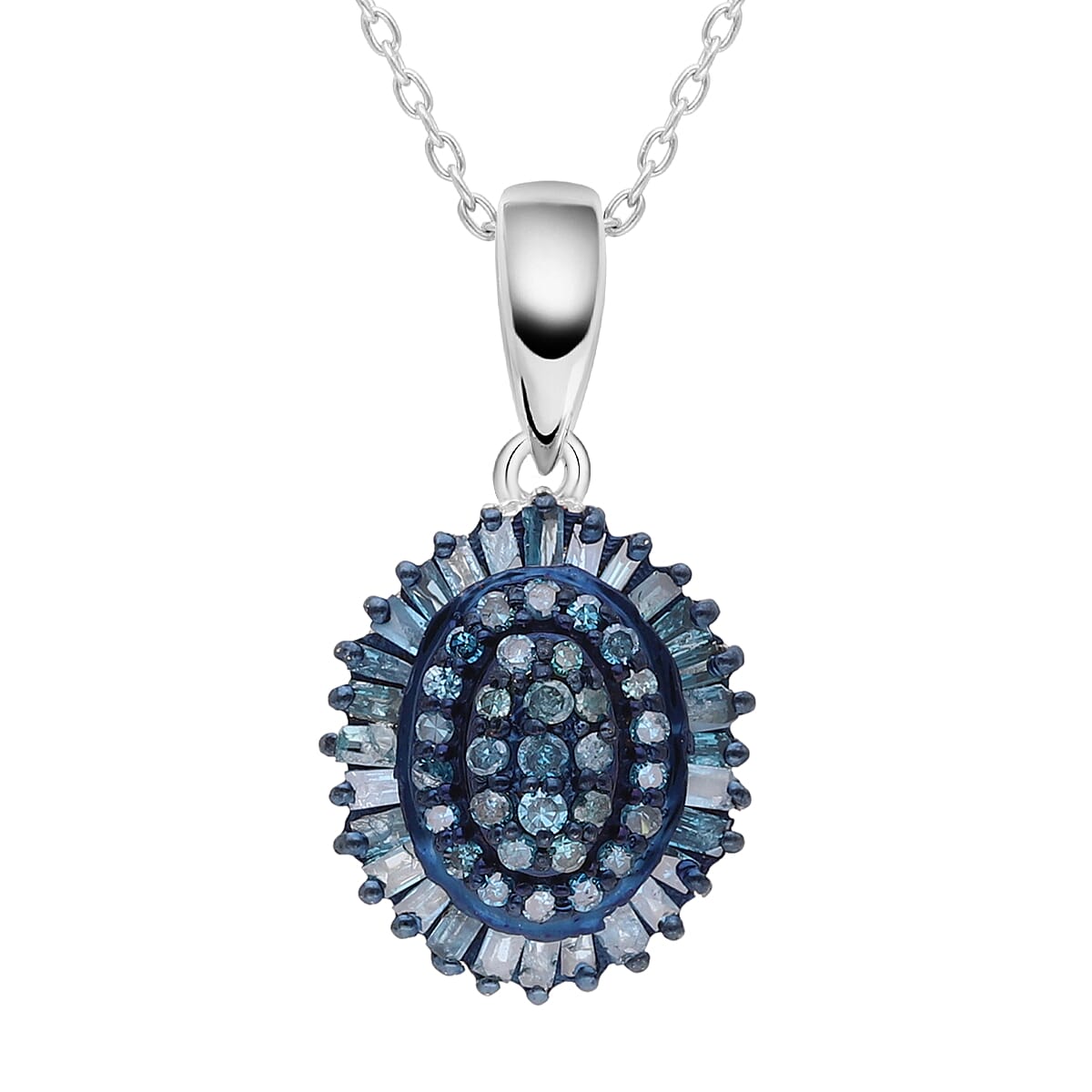 TLV Blue Diamond (IR) Floral Pendant Necklace (18 Inches) in Platinum Over Sterling Silver 0.50 ctw