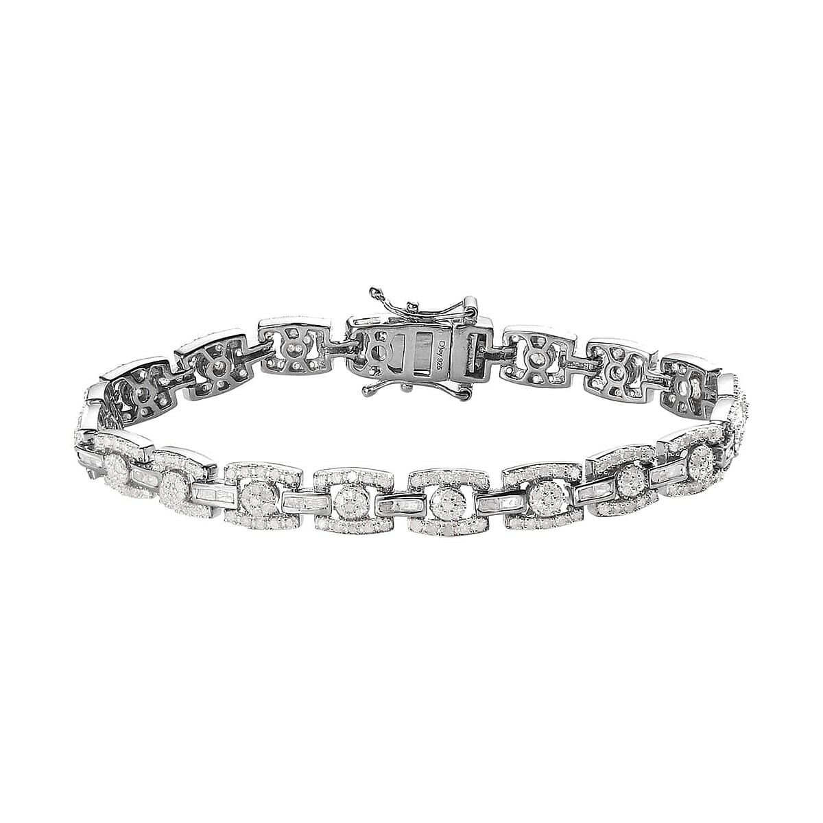 TLV Diamond Bracelet in Platinum Over Sterling Silver (7.25 In) (13.90 g) 2.90 ctw