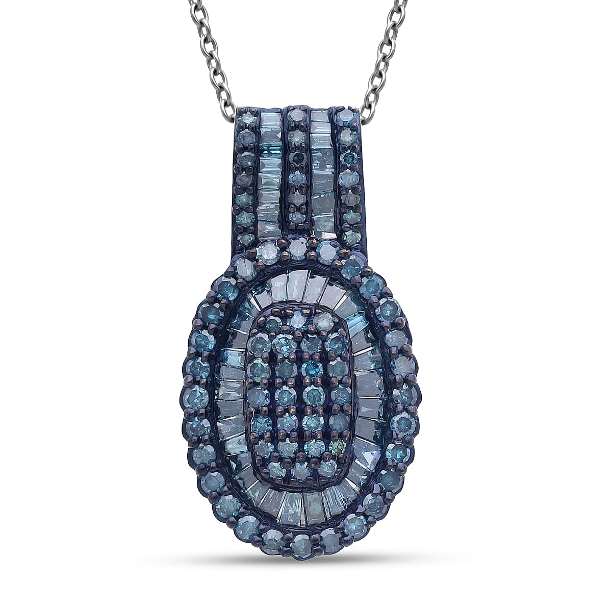 TLV D'Joy Blue Diamond 1.00 ctw Cocktail Cluster Pendant Necklace in Rhodium Over Sterling Silver 20 Inches