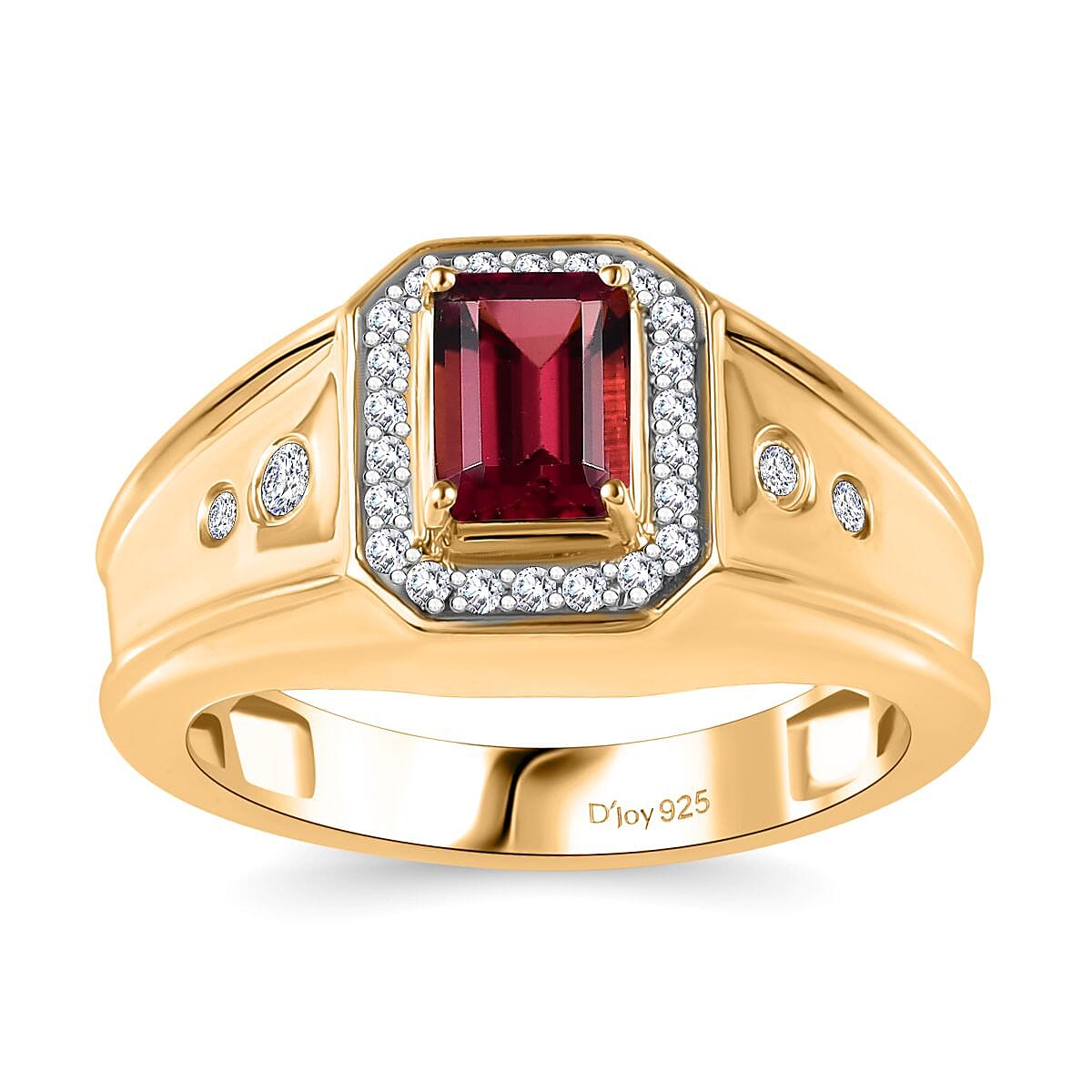 TLV Premium Ouro Fino Rubellite, Moissanite Men's Ring in 18K Vermeil YG Over Sterling Silver (Size 9.0) 1.60 ctw