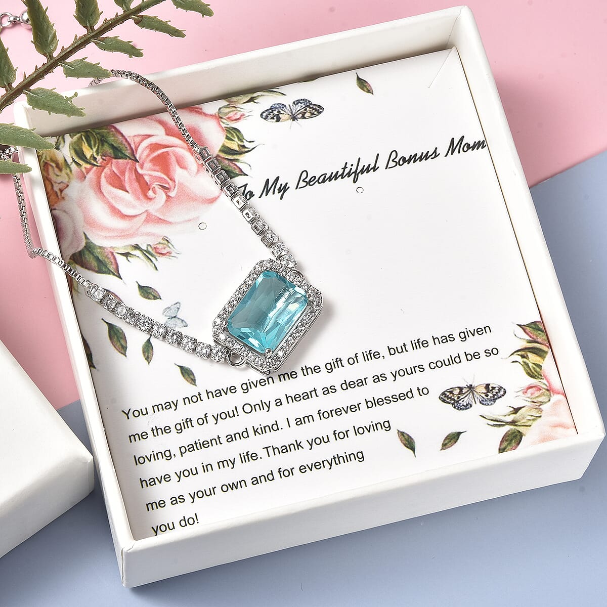 To My Beautiful Bonus Mom Jewelry Gift Box with Simulated Blue Sapphire, Simulated Diamond Adjustable Bracelet in Silvertone (6.00 In) 4.15 ctw