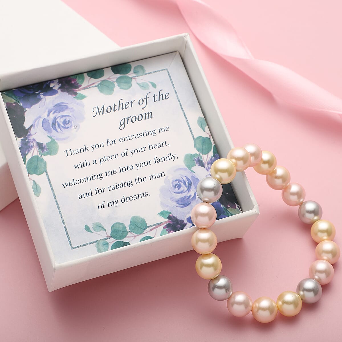 To the Mother of the Groom Jewelry Gift Set with Multi Color Neutral Pearls Beaded Stretch Bracelet