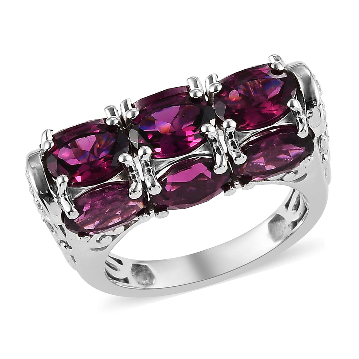 Top Rated Orissa Rhodolite Garnet and Natural White Zircon Ring in Platinum Over Sterling Silver (Size 9.0) 8.25 ctw