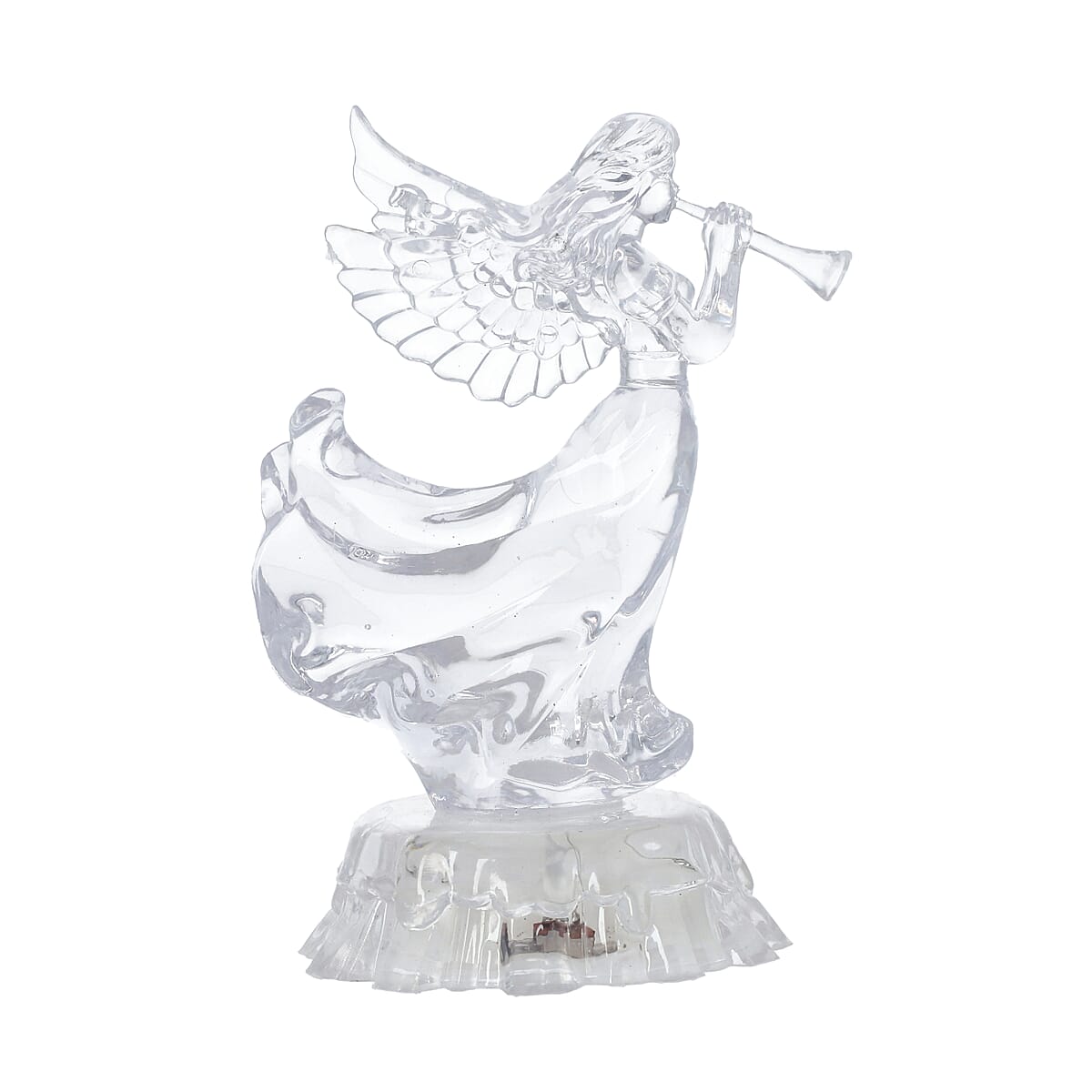Transparent Acrylic Angel Playing Trumpet with Color Changing LED Light (3xAAA Batteries)