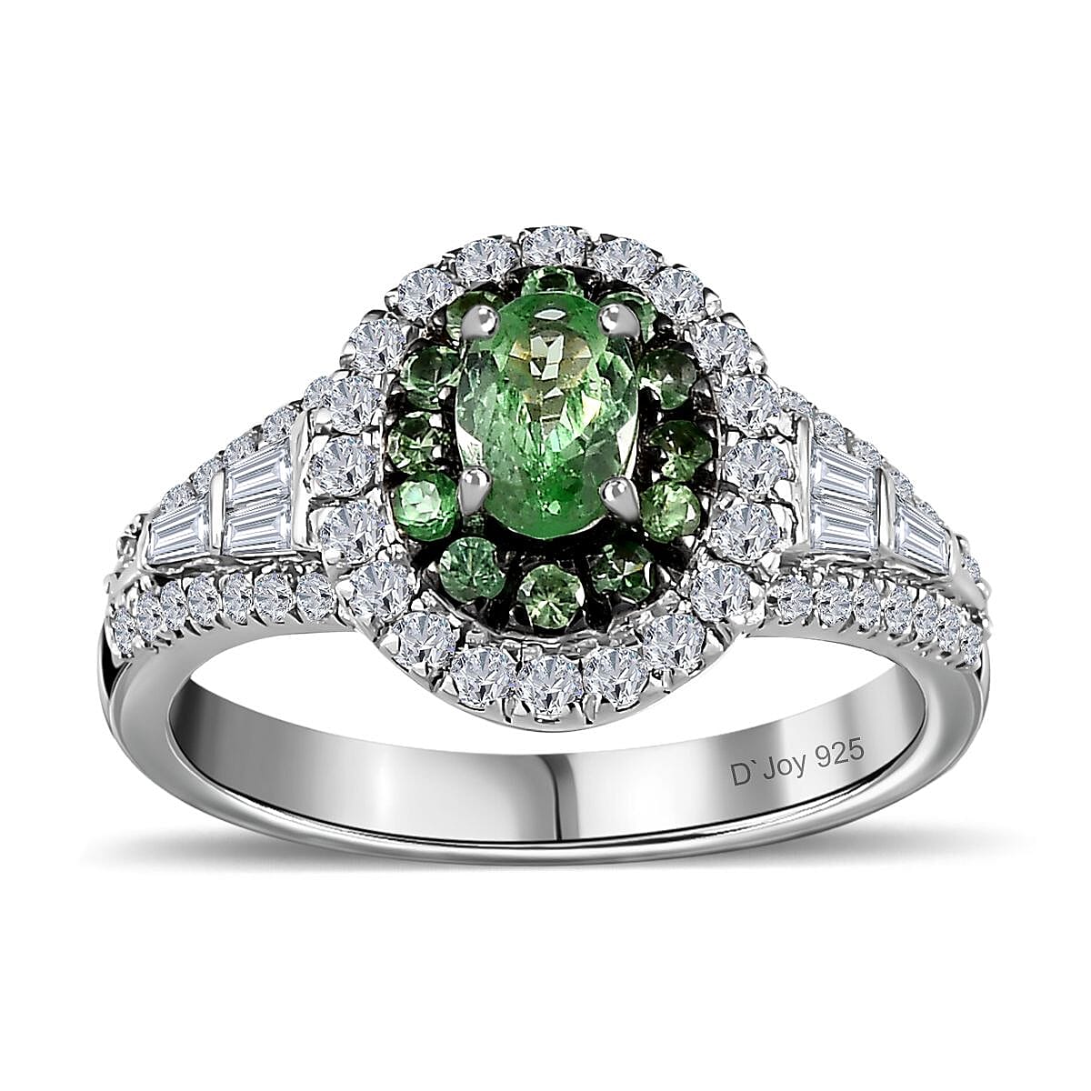 Tsavorite Garnet and Moissanite 1.40 ctw Cocktail Ring in Platinum Over Sterling Silver (Size 5.0)