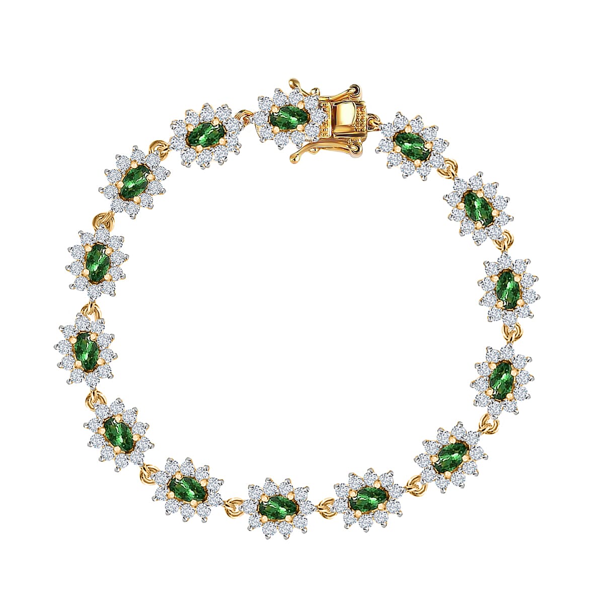 Tsavorite Garnet Sunburst and Moissanite 6.20 ctw Accent Bracelet, Garnet Bracelet, Vermeil Yellow Gold Over Sterling Silver Bracelet (6.50 In)