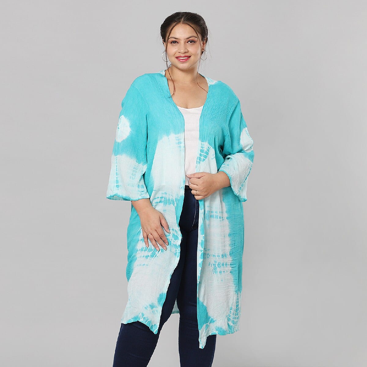 Turquoise and White Tie Dye Kimono Duster with Bell Sleeves - One Size Fits Most