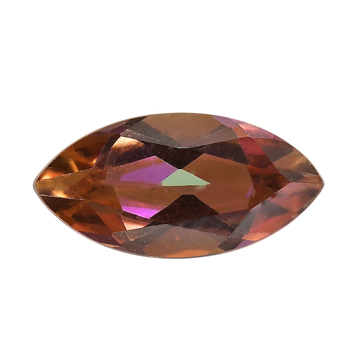 Upgrade your collection with this beautiful marquise-shaped twilight mystic topaz. Topaz is an amazingly variable gem, available in a dizzying variety of styles. Mystic twilight topaz represents one such variety. This gemstone harnesses the essence of colors that twilight represents, featuring warm yellows, passionate pinks, and dusky oranges. Capturing the gentle light of a setting sun, mystic twilight topaz radiates with romantic charm. This gem contains a carat weight of 1.11 ctw and comes in a size of 10x5 mm. Wear this classic gem as a ring, pendant, earrings, or brooch.