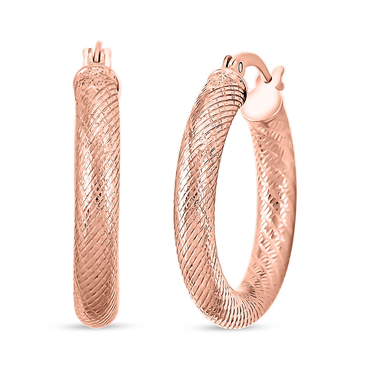 Twisted Diamond-cut Hoop Earrings in 14K Rose Gold Over Sterling Silver 3.50 Grams