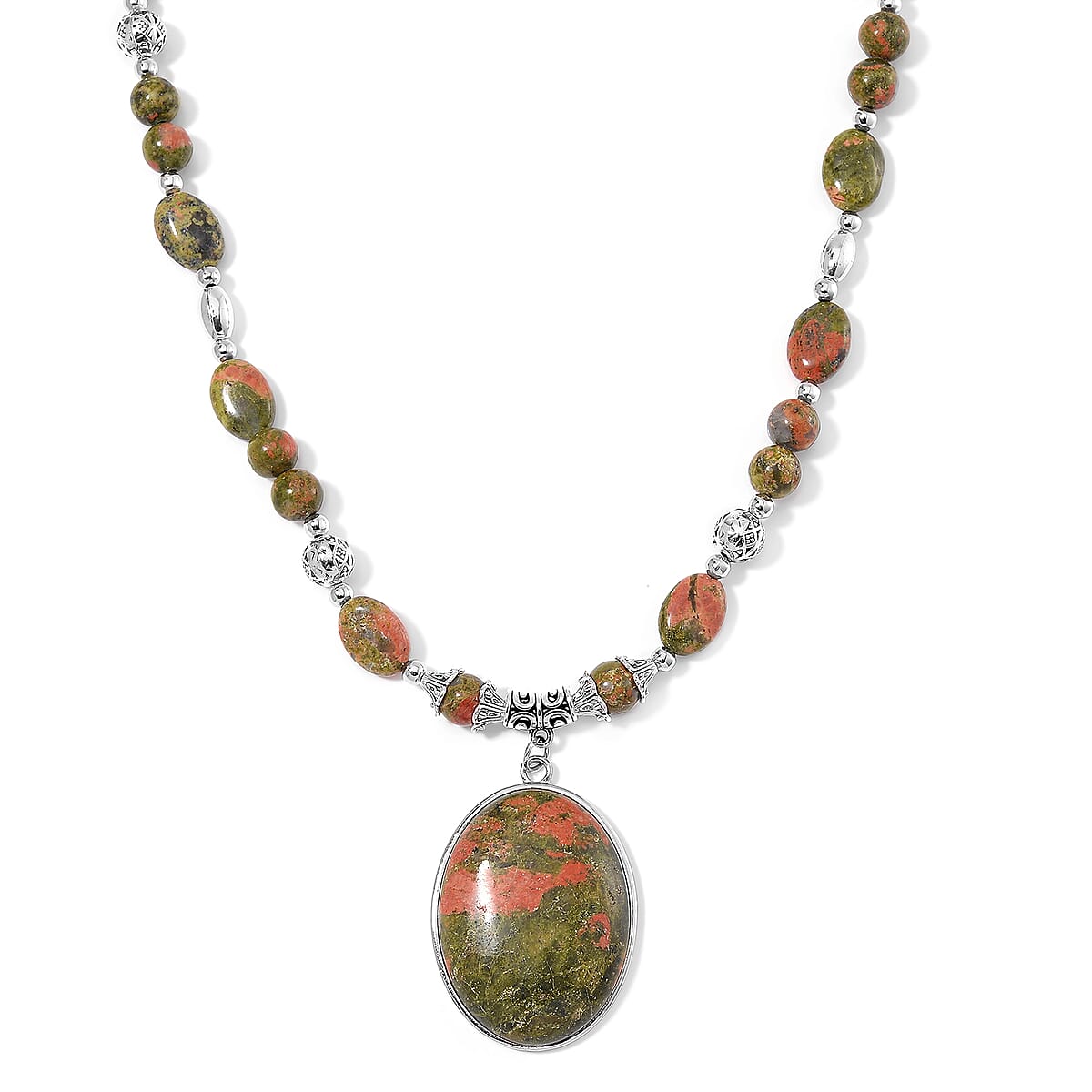 Unakite 300.00 ctw Beaded Necklace in Silverstone 20 Inches