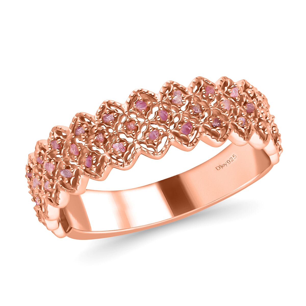 Uncut Natural Pink Diamond Eternity Band Ring in Vermeil RG Over Sterling Silver, Wedding Bands For Women (Size 5.0) 0.25 ctw