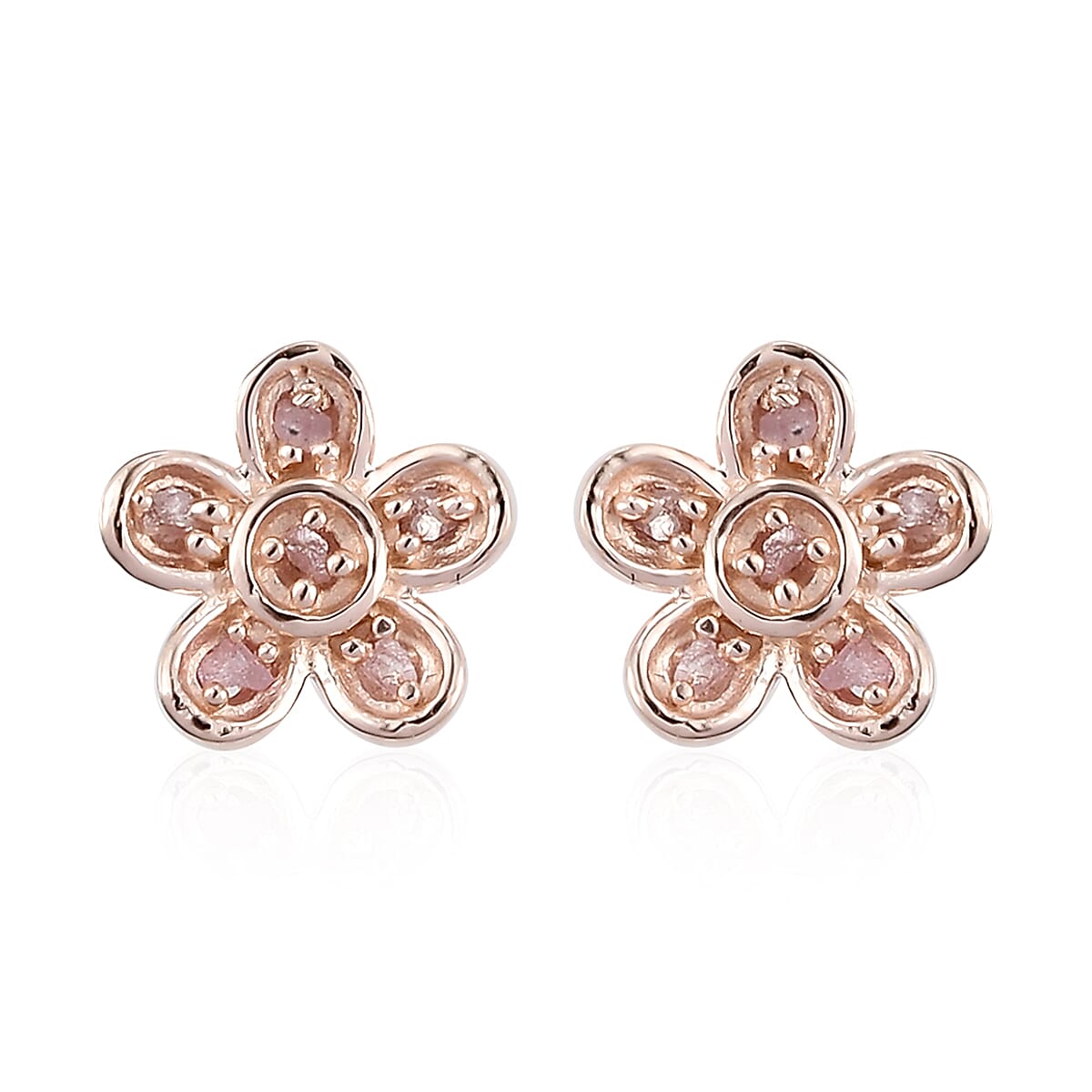 Uncut Natural Pink Diamond Flower Stud Earrings in Vermeil Rose Gold Over Sterling Silver 0.10 ctw