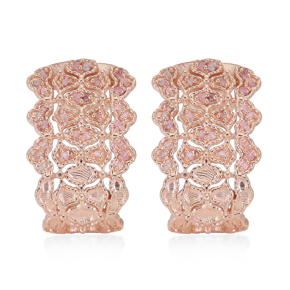 Uncut Natural Pink Diamond J Hoop Earrings in Vermeil Rose Gold Over Sterling Silver 0.25 ctw