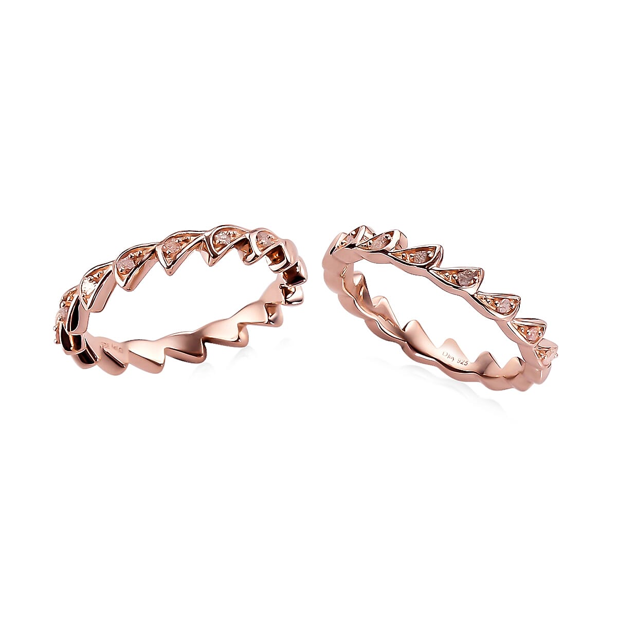 Uncut Natural Pink Diamond Stackable Band Ring in Vermeil Rose Gold Over Sterling Silver (Size 7.0) 0.10 ctw