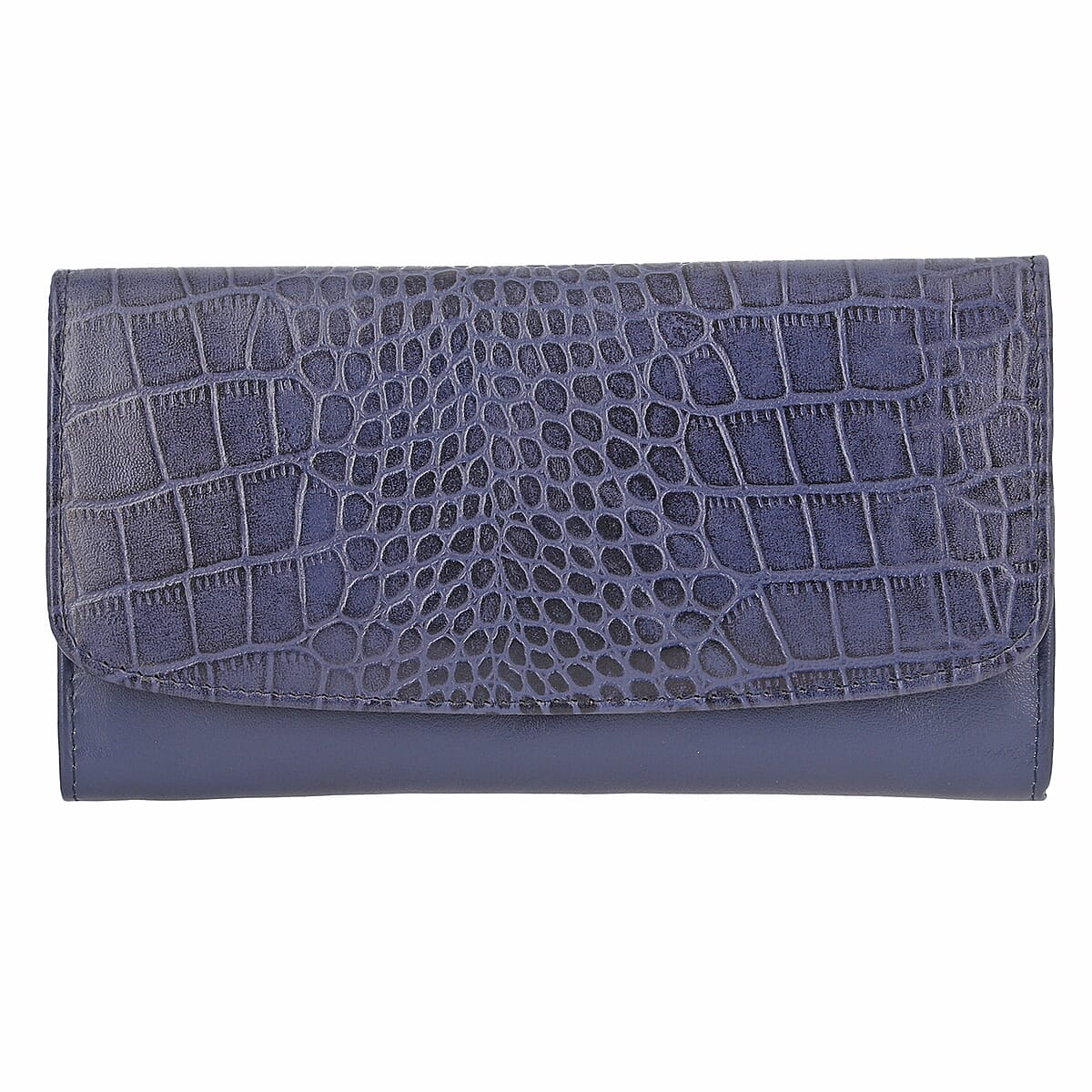 Union Code Navy Croc Embossed Genuine Leather Wallet