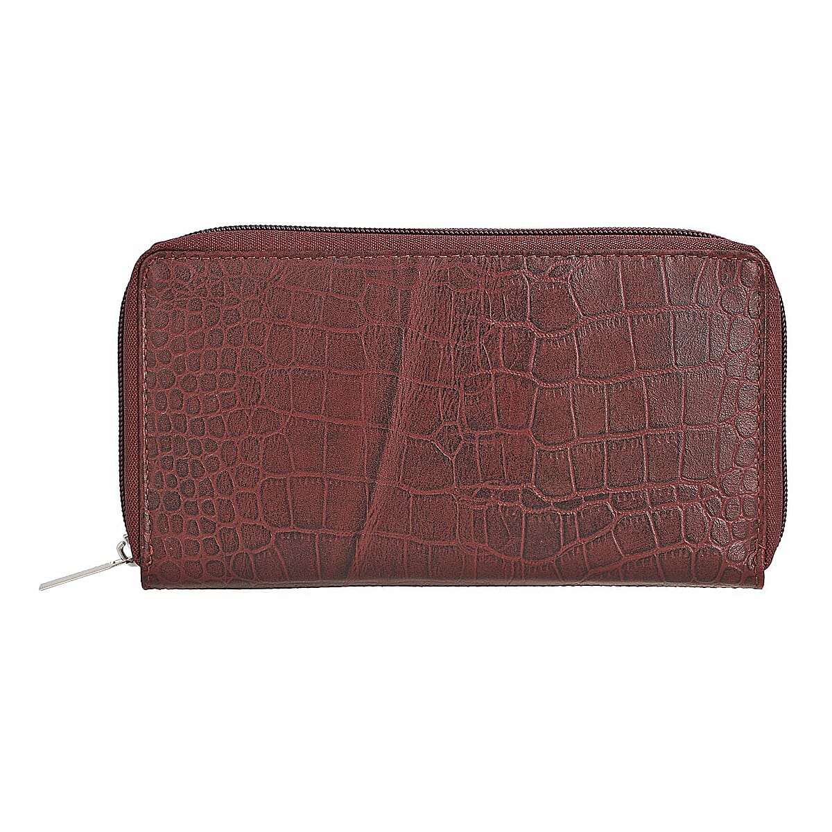 Union Code Wine Genuine Leather Croco Embossed RFID Wallet