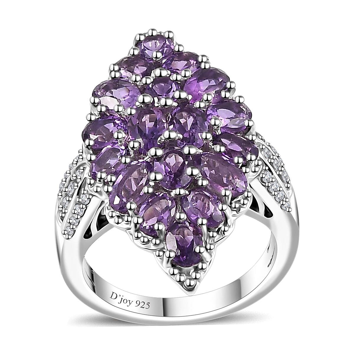 Uruguayan Amethyst and White Zircon Elongated Ring in Platinum Over Sterling Silver (Size 6.0) 3.75 ctw