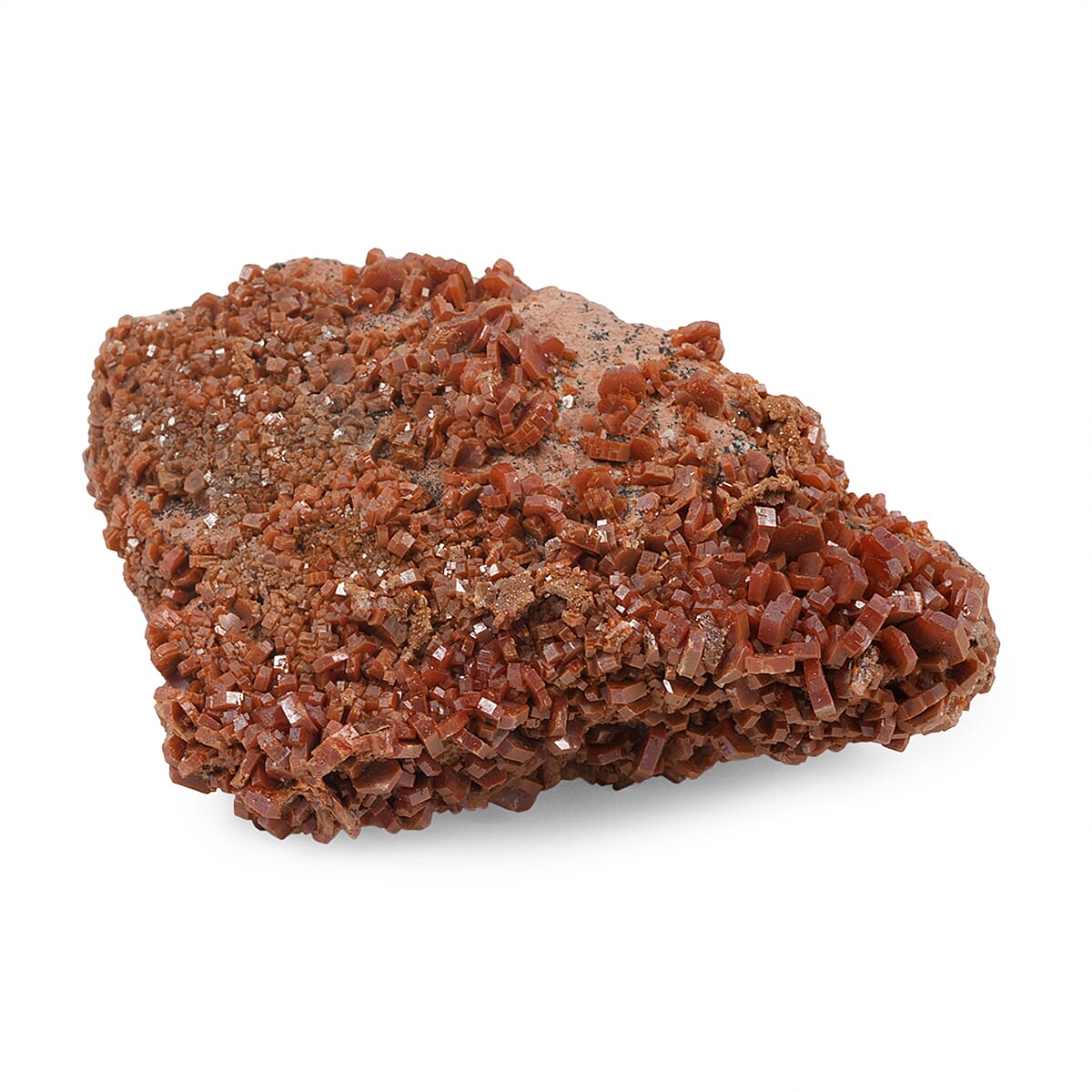 Naturally vibrant and crystalline, this large vanadinite specimen showcases striking red-orange crystal formations. Its raw mineral structure and bold coloration create a dramatic decorative presence. Designed to enhance interiors with rare mineral beauty and collector appeal.