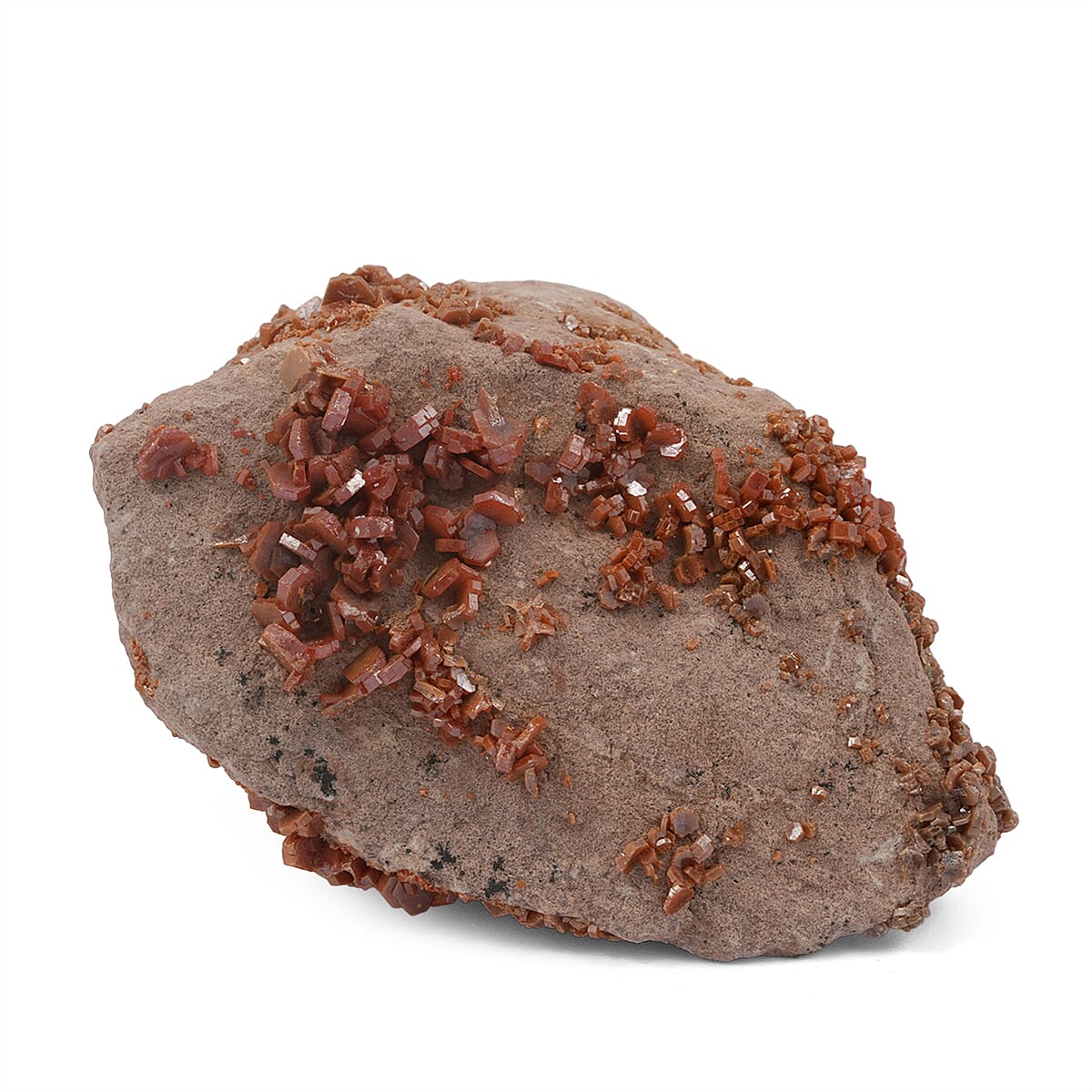 Naturally vibrant and crystalline, this large vanadinite specimen showcases striking red-orange crystal formations. Its raw mineral structure and bold coloration create a dramatic decorative presence. Designed to enhance interiors with rare mineral beauty and collector appeal.