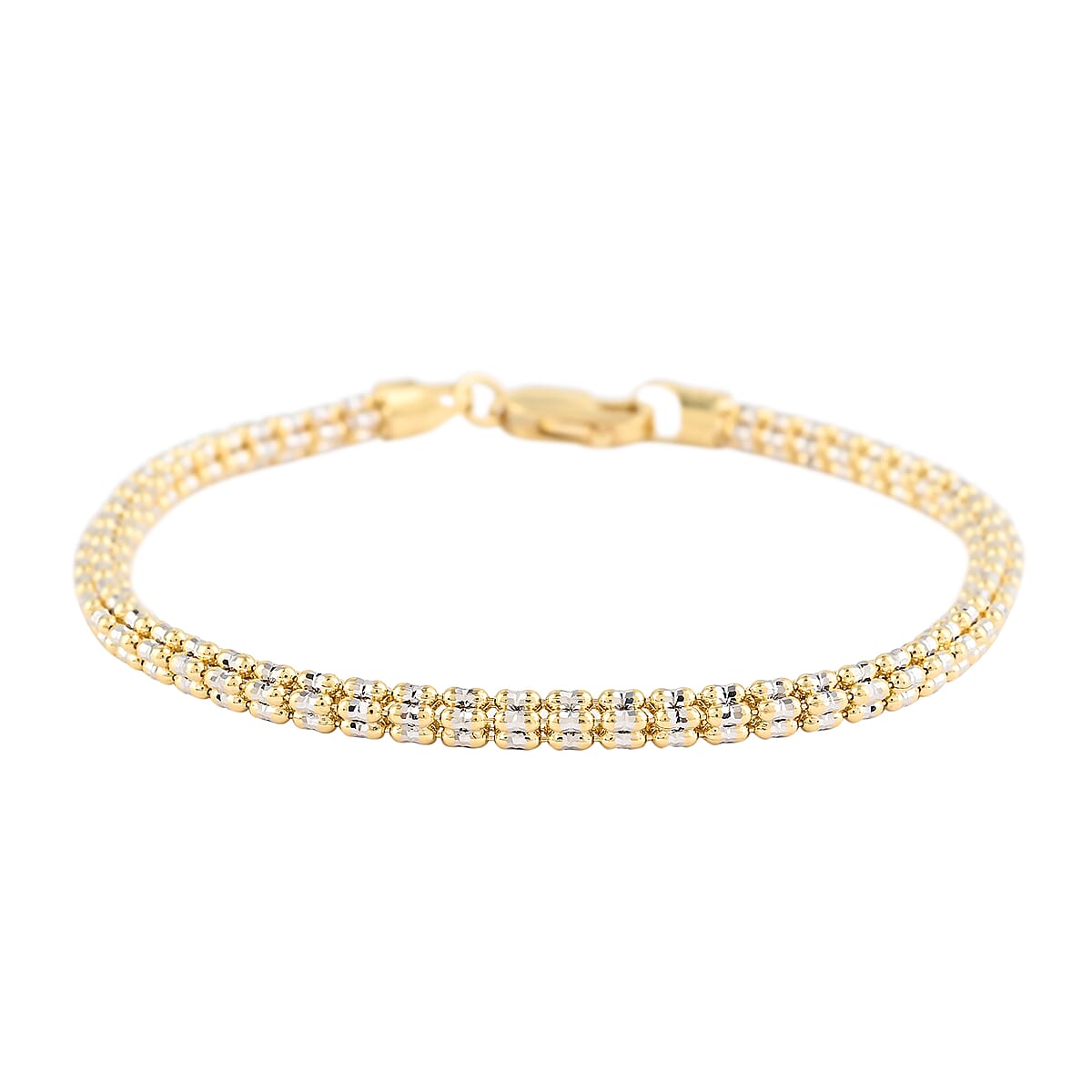 Giving you a similar shine of crushed ice, this dual tone bracelet is designed for you to look extraordinary. The diligently designed accessory radiates the glamour of sheen, making it an absolute spectral delight. Endlessly versatile to wear with any formal or casual ensemble, this gold bracelet goes way beyond your staples.