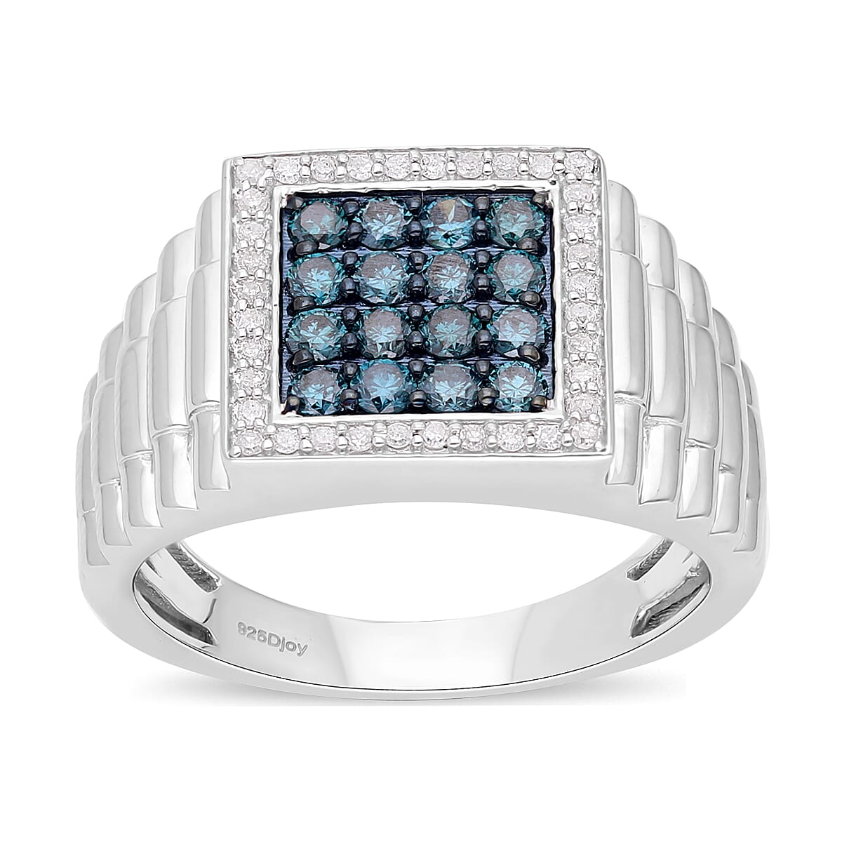 Venice Blue Diamond I1-I2 and Diamond Men's Ring in Platinum Over Sterling Silver (Size 11.0) 1.00 ctw