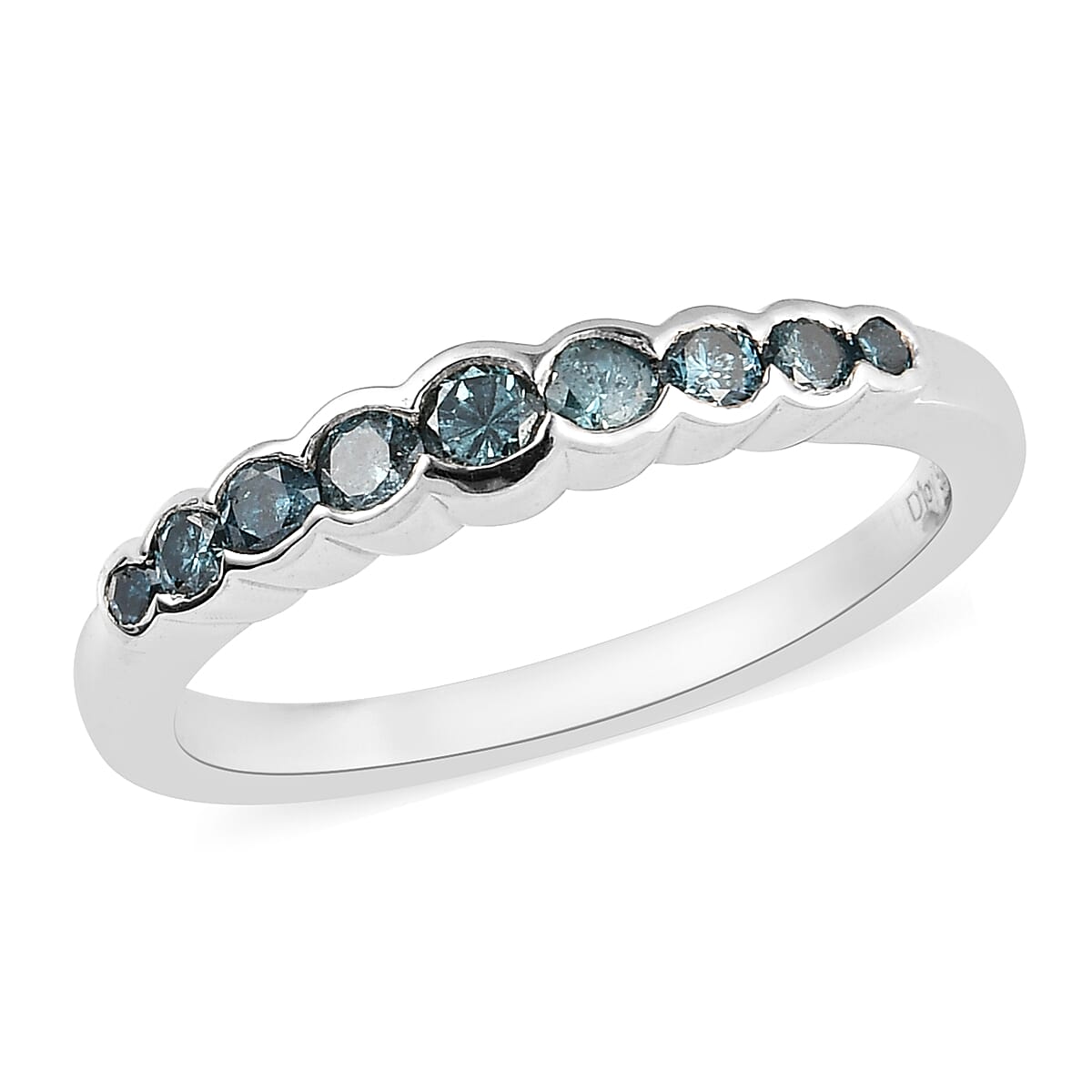 Venice Blue Diamond I1-I2 Band Ring in Platinum Over Sterling Silver (Size 7.0) 0.33 ctw