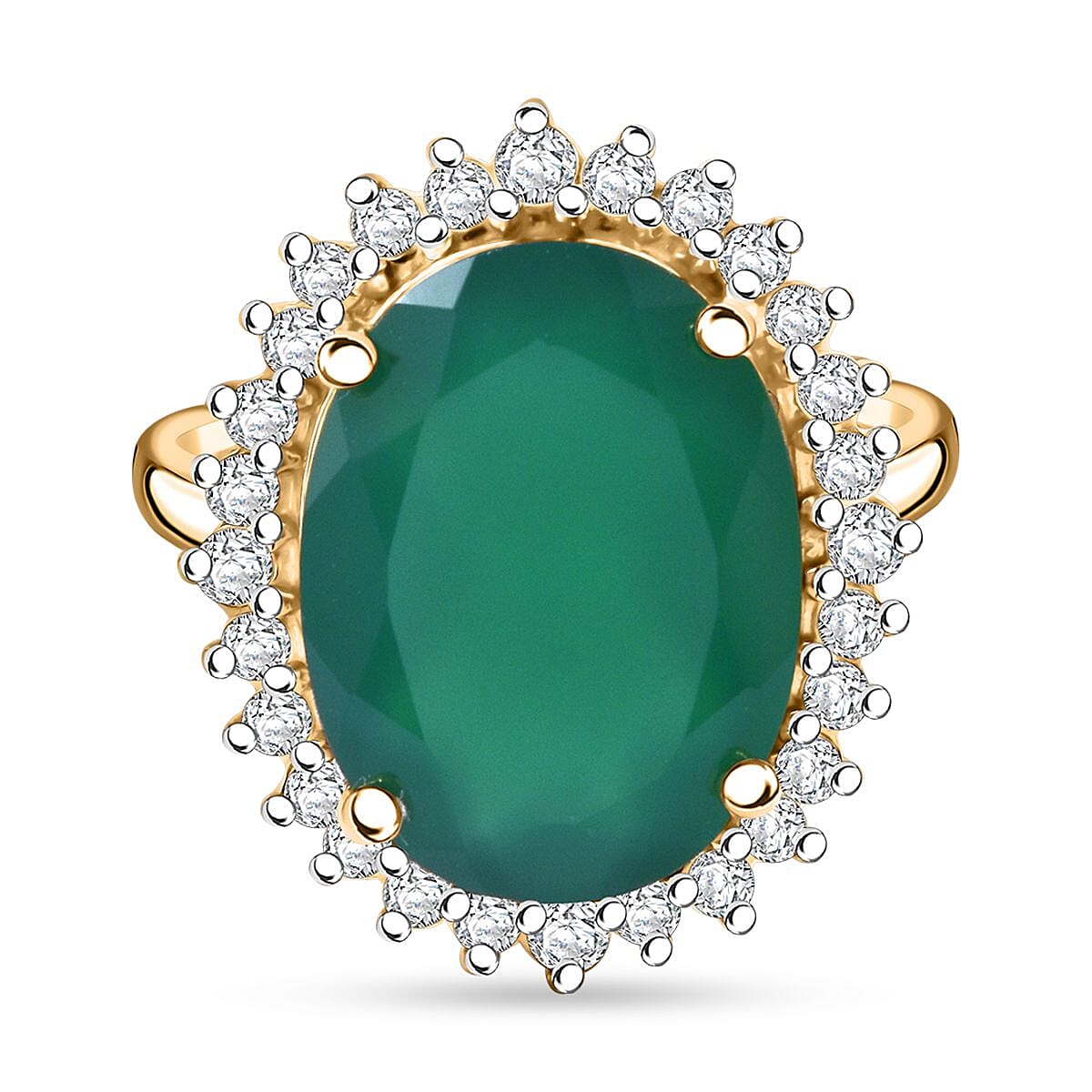 Verde Onyx and White Zircon 8.75 ctw Forest Bloom Ring in Vermeil Yellow Gold Over Sterling Silver (Size 8.0)