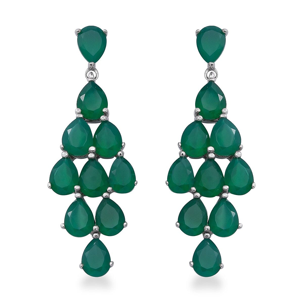 Inspired by a chandelier design, these Verde Onyx earrings give a luxurious look. The pear-shaped gemstones are arranged in a rhombus pattern giving a flashy appearance. Crafted in sterling silver metal, these dangle earrings are must-have jewelry for festive occasions.