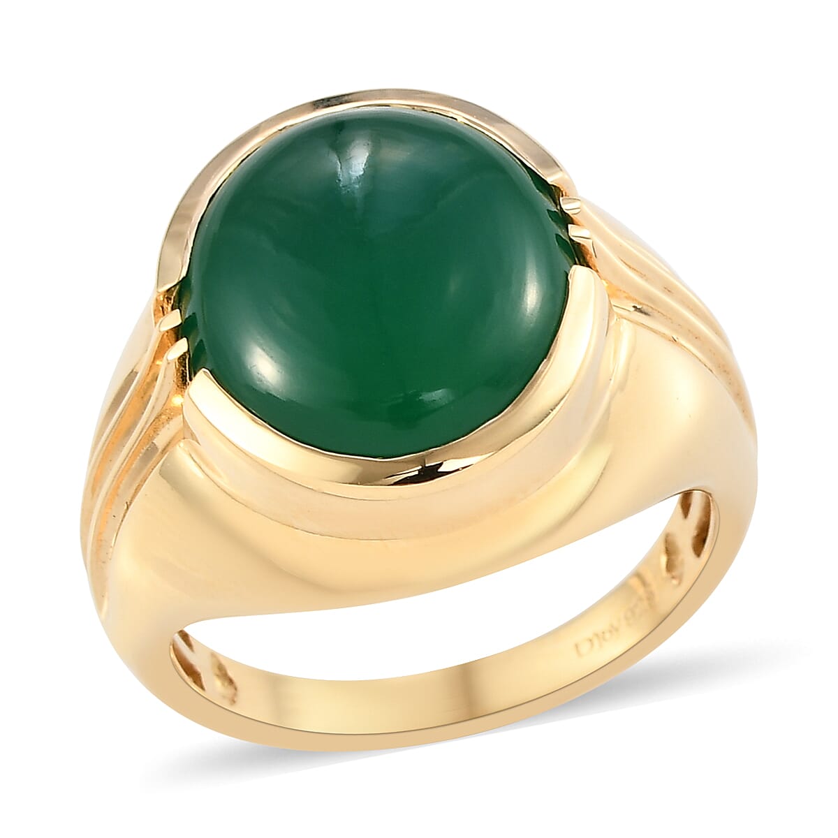 Verde Onyx Solitaire Men's Ring in Vermeil Yellow Gold Over Sterling Silver (Size 13.0) 8.50 Grams 11.00 ctw