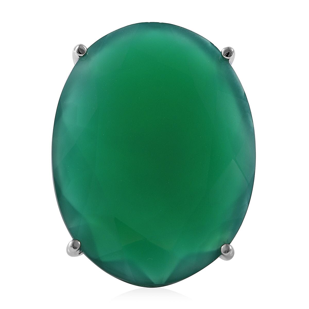 Verde Onyx Solitaire Ring in Platinum Over Sterling Silver (Size 6.0) 54.50 ctw