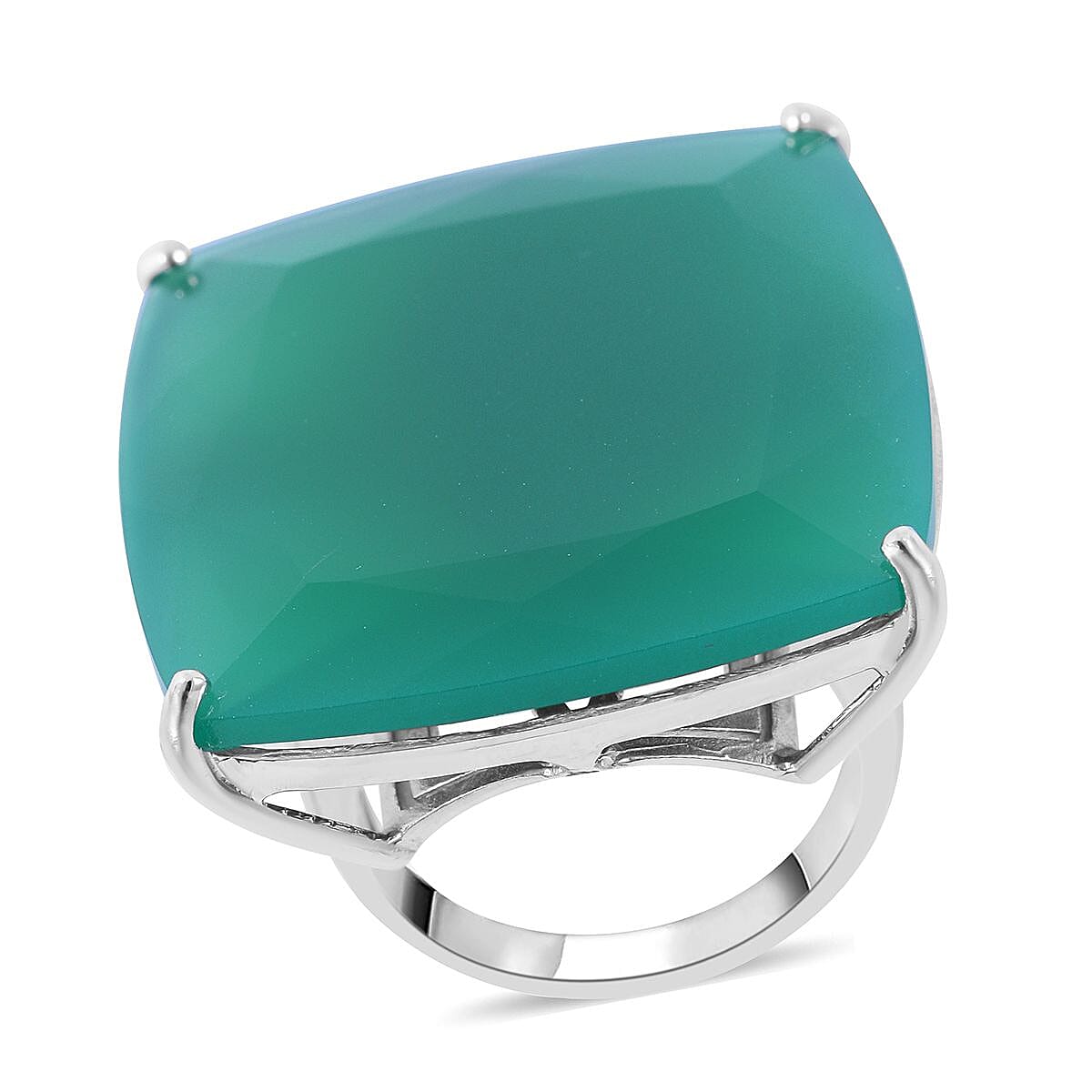 Verde Onyx Solitaire Ring in Sterling Silver (Size 8.0) 50.00 ctw