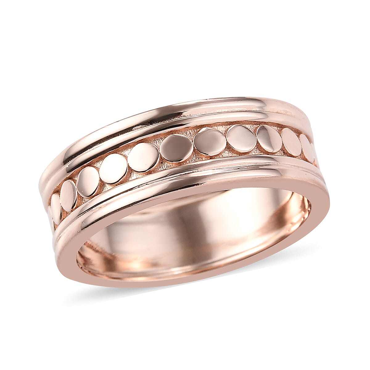 Based on the currently trending spinner-style rings, this plain metal ring is sure to impress you with its beauty and utility. Made from sterling silver with rose gold vermeil, this spinner ring looks exotic without any gemstone. The spinner ring is also known as anxiety ring, fidget ring, anti-stress ring, and worry ring due to its amazing benefits. This ring features two bands joined together in such a way that the upper band freely rotates on the lower one. Plain metal jewelry is currently in trend and the used metal of this ring is prized for its durability and is hypoallergenic, making it suitable for all skin types.