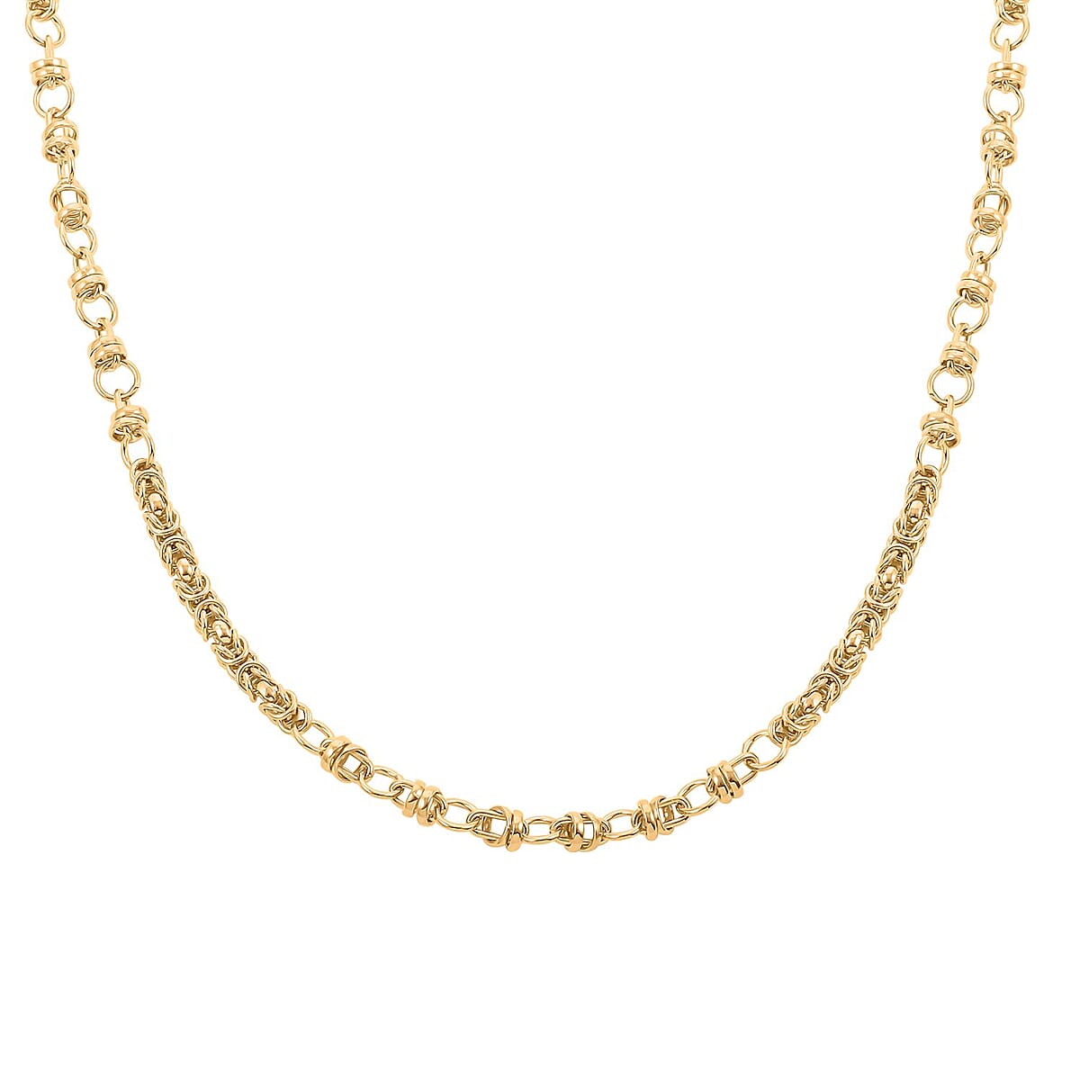 Step into timeless elegance with the fancy byzantine link chain necklace. This 20-inch masterpiece showcases the intricate and classic Byzantine design, symbolizing luxury and sophisticated style. Crafted to perfection, the interlocking links create a dance of light and shadow, making it a versatile piece for formal and casual wear. Whether draped over a dress for an evening out or paired with a simple blouse, this necklace is more than an accessory; it's a statement of your refined taste and appreciation for classic beauty.