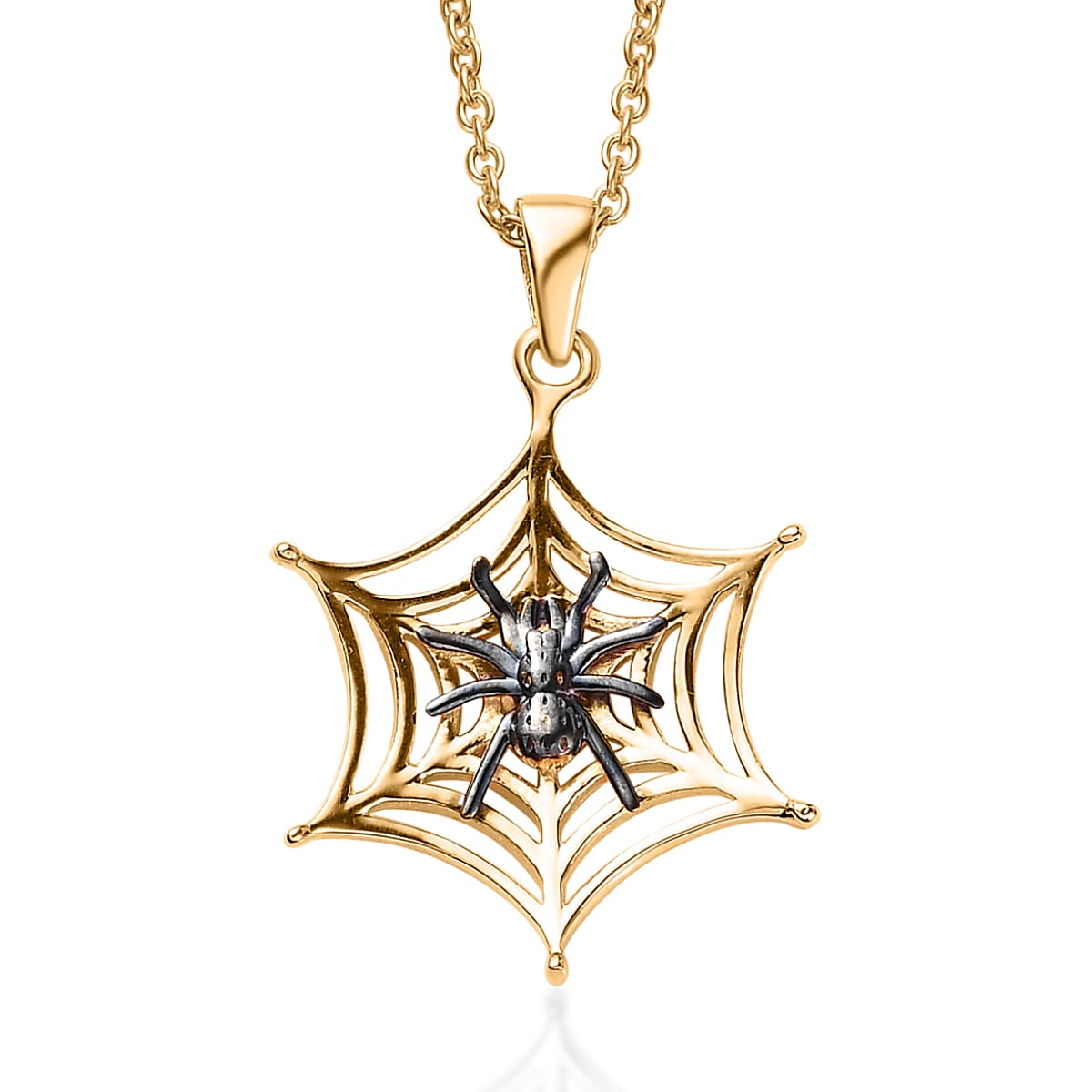 Vermeil Yellow Gold Over Sterling Silver Halloween Spider Web Pendant with ION Plated YG Stainless Steel Necklace 20 Inches