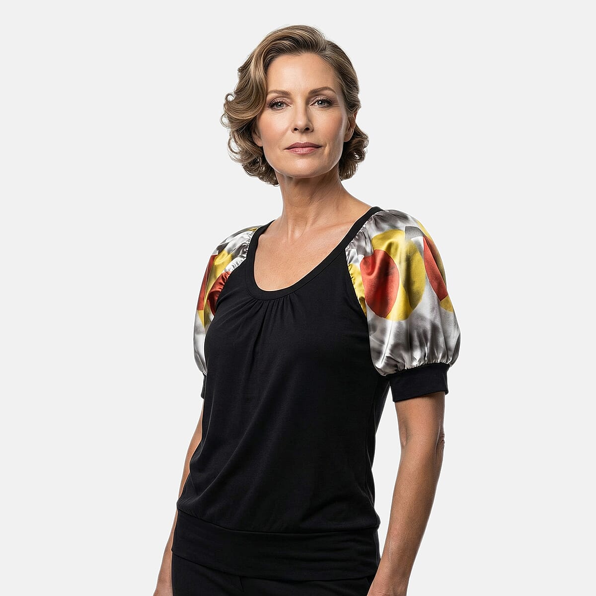 Vertigo Black, Multi Color Painting Print Puff Sleeve Top -Extra Small