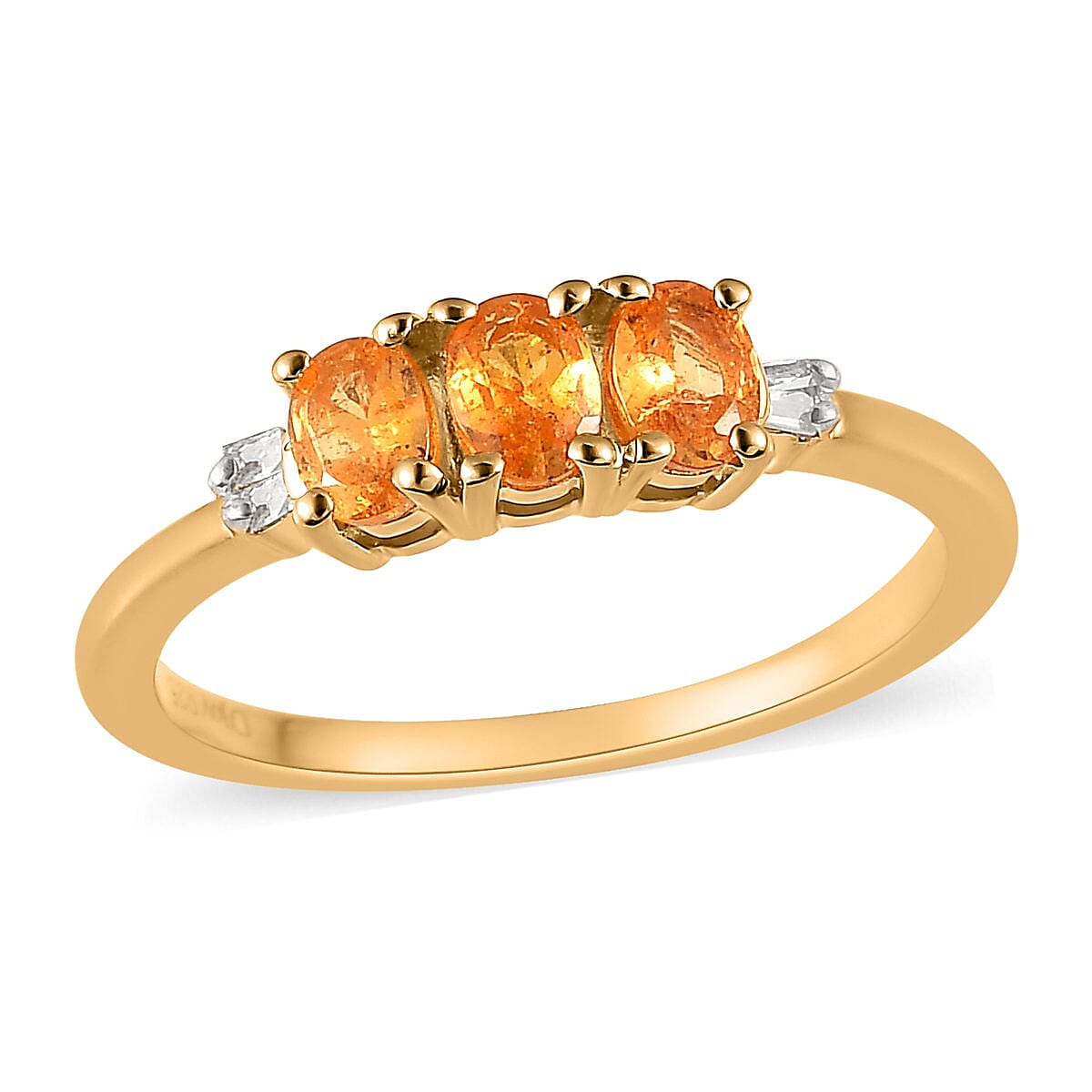 Viceroy Spessartine Garnet and Diamond Accent 3 Stone Ring in Vermeil Yellow Gold Over Sterling Silver (Size 5.0) 0.65 ctw