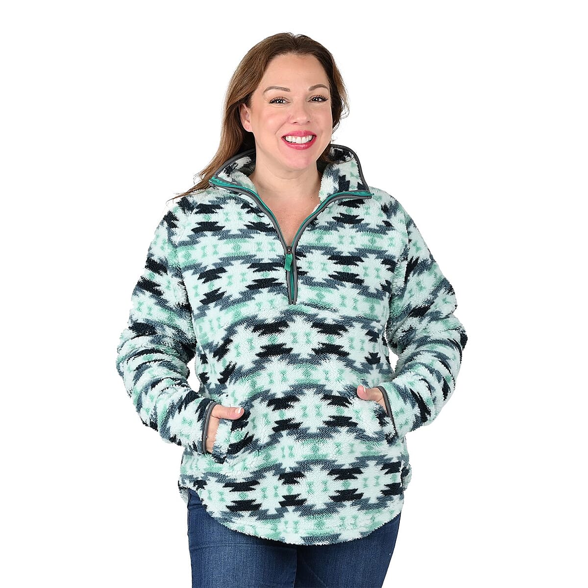 Embrace the perfect blend of comfort and style with Victory Outfitters' Aztec print pullover. Crafted from super soft fleece, this pullover promises to keep you warm and comfortable all season long. Featuring a striking Aztec print, it adds a trendy touch to your wardrobe. Its relaxed fit makes it ideal for both lounging and outdoor activities. Pair it with your favorite jeans or leggings for an effortlessly chic and cozy look.