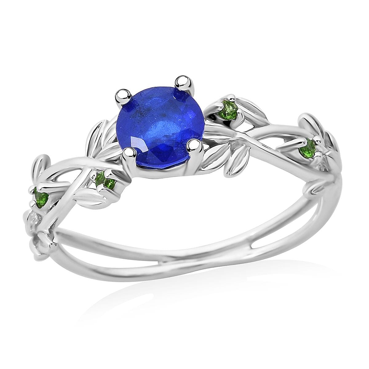 Vietnamese Cobalt Blue Spinel (DF) and Chrome Diopside 1.15 ctw Ring in Rhodium Over Sterling Silver (Size 7.0)