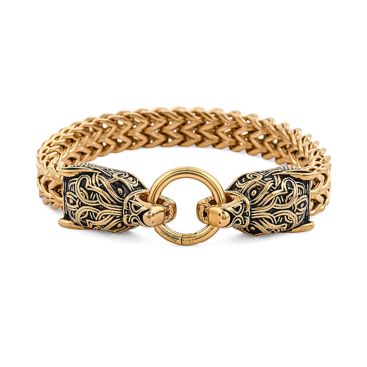 Viking Wolf Head Bracelet in ION Plated YG Stainless Steel (9.50 In)