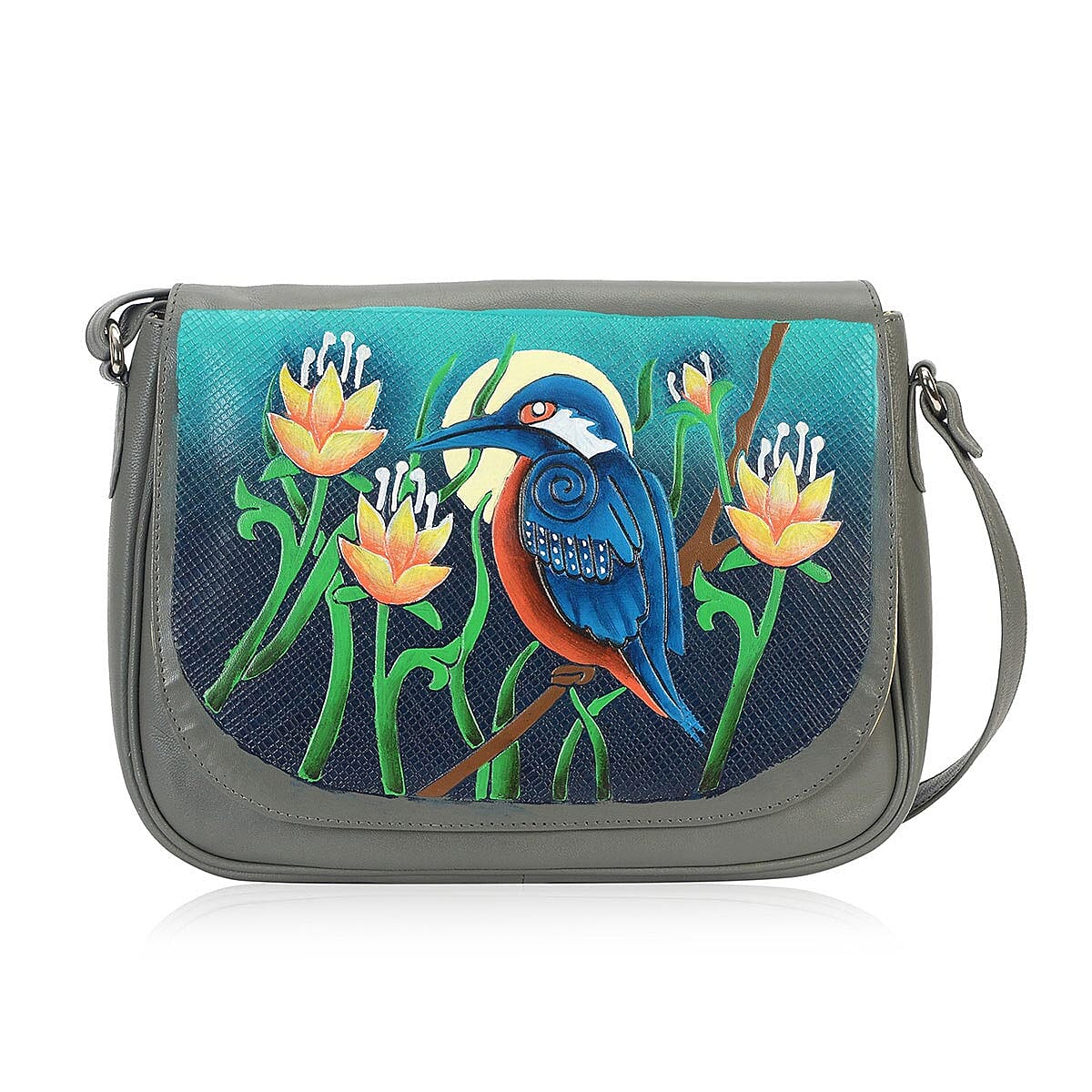 VIVID by SUKRITI - Gray Hummingbird Hand Painted 100% Genuine Leather Crossbody Bag | Designer Crossbody Bag Purse | Leather Handbags