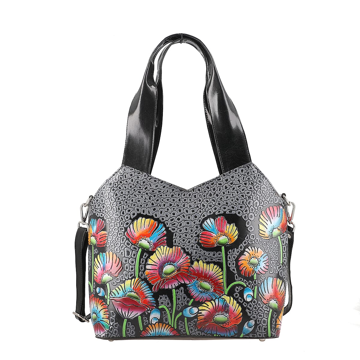 This genuine leather hand painted poppy flower shoulder bag showcases exquisite craftsmanship with its unique hand-painted poppy flower design. Made from high-quality leather, this women’s handbag is durable and stylish, making it a standout accessory for any outfit. Its spacious interior and comfortable shoulder strap combine functionality with artistic flair.